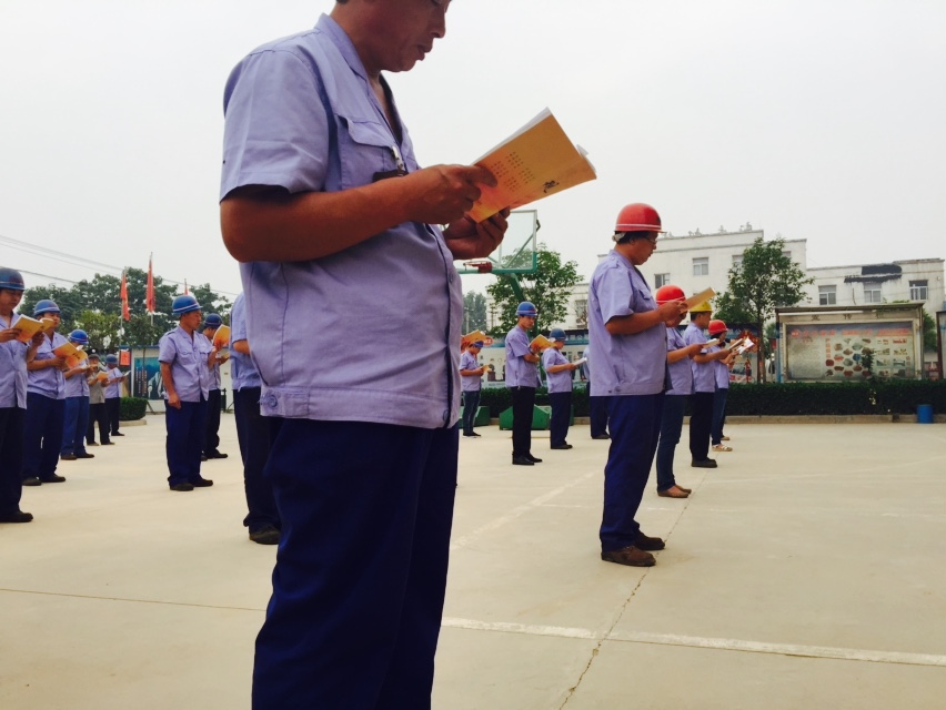 早上的太阳撒过伟志模板,一排排辛苦的农民工笔直的站立,每个人都是庄严而又神圣的表情!一首“感恩的心”让大家激情满满!